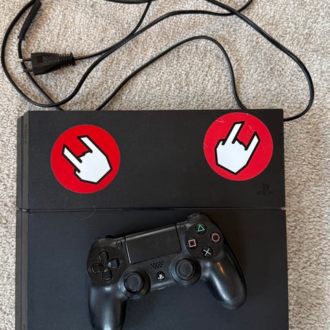 Sony Playstation 4 vit spelkonsol. Konsolen är av modellen Playstation 4 och har en vit färg. Den är avsedd för spel och multimediaanvändning.