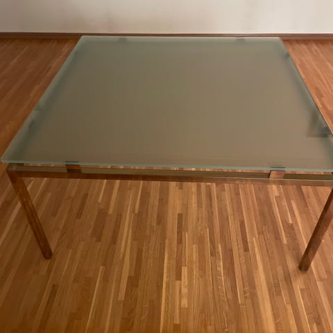 Finns nån liten repa i glasskivan och lite slitage på några ställen. Men i övrigt är bordet i gott skick.