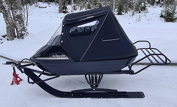 Vi har omarbetat både skoterpulka och underrede för att förbättra både komfort och design. Hajkpulkan är idag en robust pulka med bra egenskaper, lättdragen , lössnökörning , bra komfort även vid sämre före.