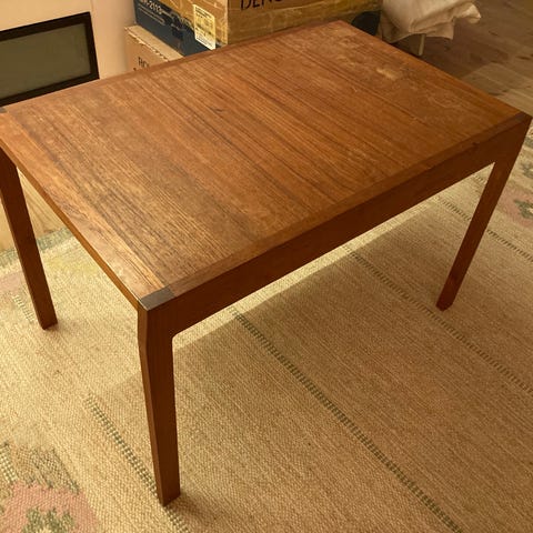 Design och Värdering, Klassiskt soffbord/sidobord i teakfanér med metallben