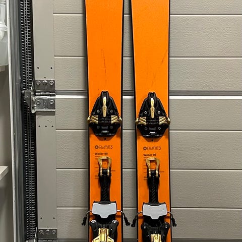 ATK FR14 bindning. Jag har använt en pjäxor med sulmått 289 mm och bindningen går att flytta 20 mm bakåt och 10 framåt.