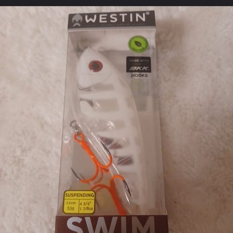 Denna Westin Swim Glidebait är 12 cm lång och väger 53 g. Den är designad för att vara suspenderande och har en långkastande konstruktion. Tillverkad av ABS-plast och utrustad med ultra-vassa kolfiberstål-krokar. Färgerna är handmålade och den har en unik termokromatisk effekt.