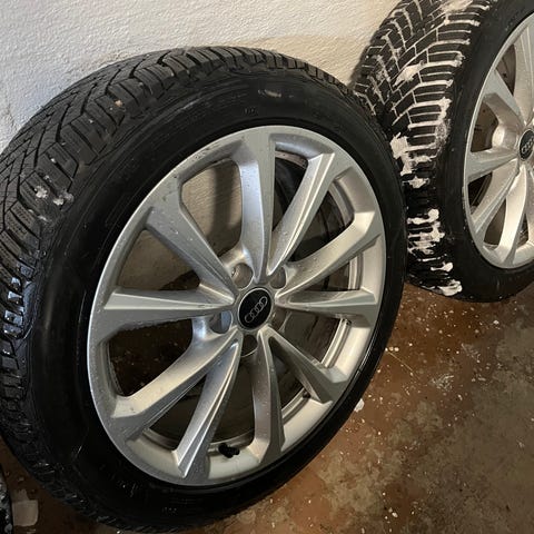 Fälgarna har en del märken på sig (tidigare ägaren). De är inte i perfekt skick. Jag är tokpedant med mina fälgar, men det har funkat med dessa ändå. Den hinna man får av vintersmuts (oavsett hur ofta man tvättar) gör att det inte syns att de är helt perfekta.