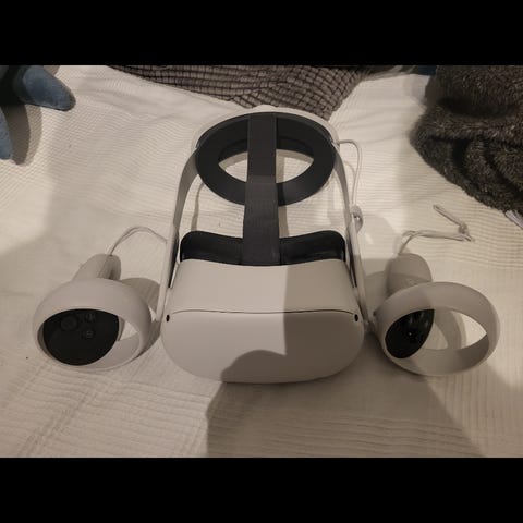 Oculus quest 2 säljes då jag ej använder det längre. Allting fungerar som det ska men kontrollerna har skav märken. Laddare medförs ej.