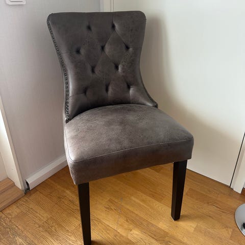7 stycken Mio stolar med svart sits i läderimitation och ryggstöd. Lätta att torka av!