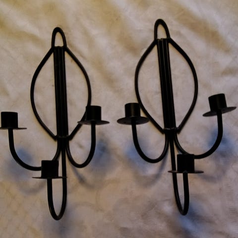 Ett par dekorativa väggljusstakar i smide.