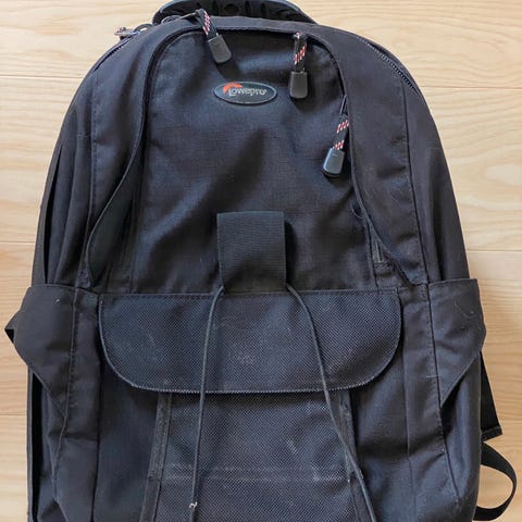 Lowepro ryggsäck i svart färg med vadderade fack för skydd av utrustning. Ryggsäcken har flera fack och justerbara remmar för komfort. Passar för transport av kamera och tillbehör.