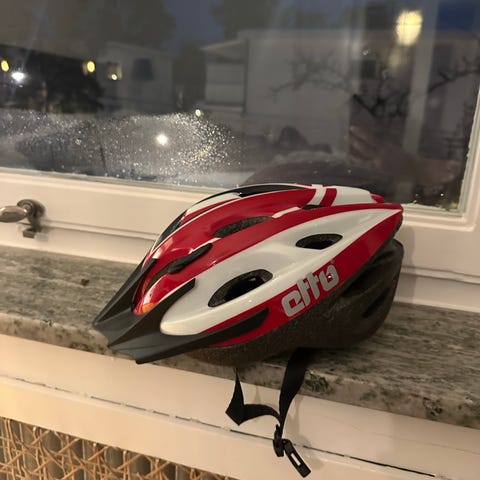 Biltema Cykelhjälm i storlek M, färger svart och vit. Hjälmen är utformad för att ge skydd vid cykling och har justerbara remmar för anpassning. Obs skickas ej