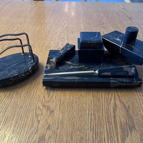 Marmor skrivbordsset med bläckhus och brevpress