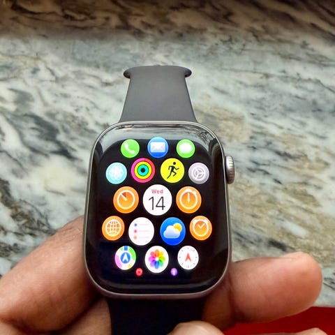 Apple Watch smartklocka i svart färg. Produkten är en bärbar digital klocka med flera funktioner för hälsa och kommunikation.