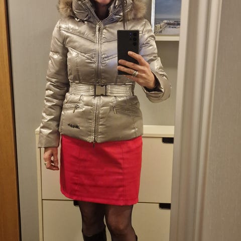 Röd vinterjacka storlek M. Finns i Tollarp utanför Kristianstad. Pris 100 kr
