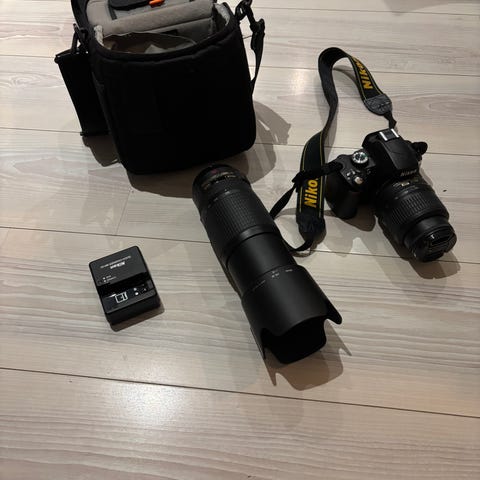 Ett litet 4GB minneskort medföljer. D40 kan ta alla objektiv som har Nikons F-fattning.