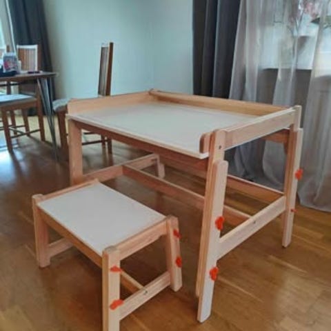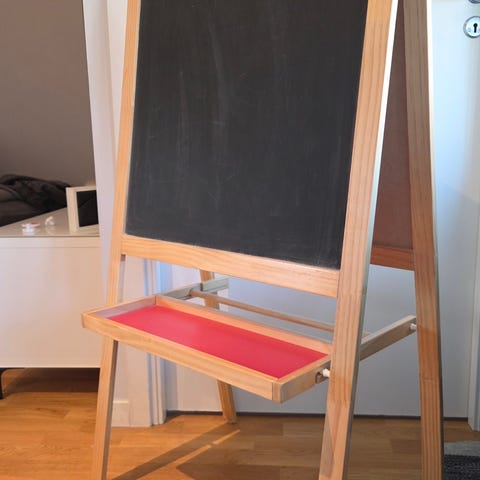 Whiteboard på ena sidan med plats för ritpappersrulle (t.ex. från IKEA).