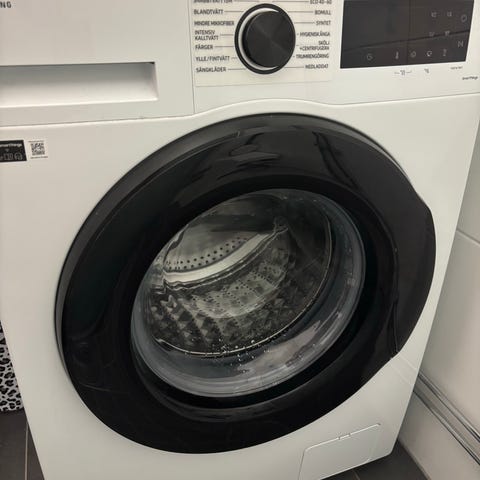 Samsung frontmatad tvättmaskin med standardstorlek. Inköpt 2021