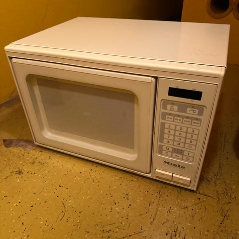 Miele mikrovågsugn i stål med flera effektinställningar och manuell kontrollpanel. Utrustad med roterande tallrik och olika tillagningsprogram för varierande användning.