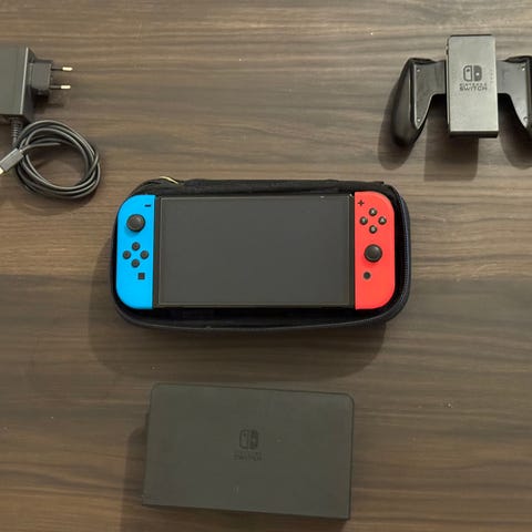 Säljer en Nintendo Switch OLED (vit modell). Konsolen fungerar felfritt och är sparsamt använd. Inga problem med drift eller kontroller.