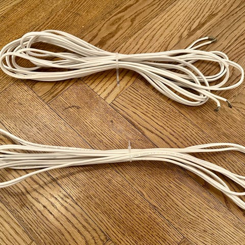De är lite klibbiga på sina ställen av tejp och de har delats lite på höger och vänster sladd så att säga. Perfekta att ha om man ska installera så de inte syns.