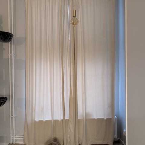 Riktiga ljudisolerande gardiner i 3 lager.