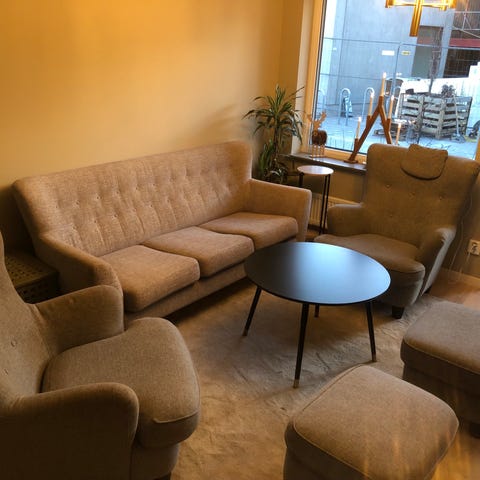 2,5 sits soffa med tygklädsel samt 2 st fåtöljer från JYSK modell Egedahl.