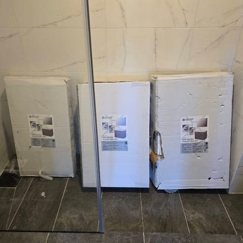 Observera: Kartongen är skadad (har gått sönder), men själva badrumsmöbeln är helt oskadad det är bara själva Kartongen som är skadad .