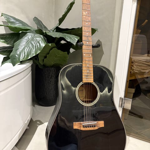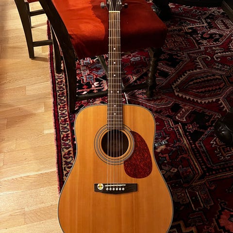 Blueridge akustisk gitarr med träfinish på kropp och hals. Gitarren har sex strängar och traditionell dreadnought-form. Den är avsedd för allmänt bruk och passar för olika musikstilar.