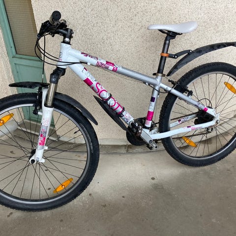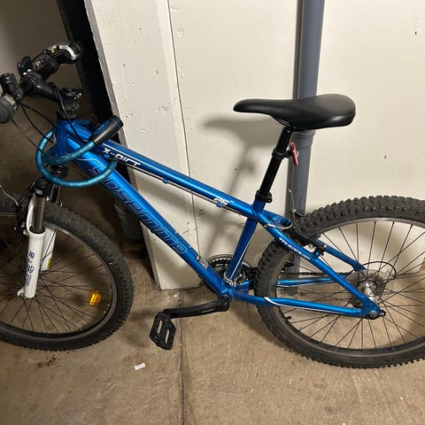 Trek Marlin 6 mountainbike i turkos färg. Cykeln är utrustad med framgaffel med dämpning och breda däck för terrängkörning. Passar för användning på olika typer av underlag och terräng. Inköpt 2021