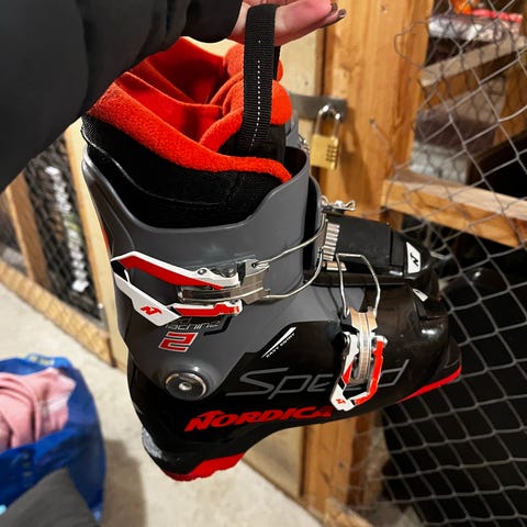 McKinley skidpjäxor i svart och röd färg, storlek 165mm innermått.