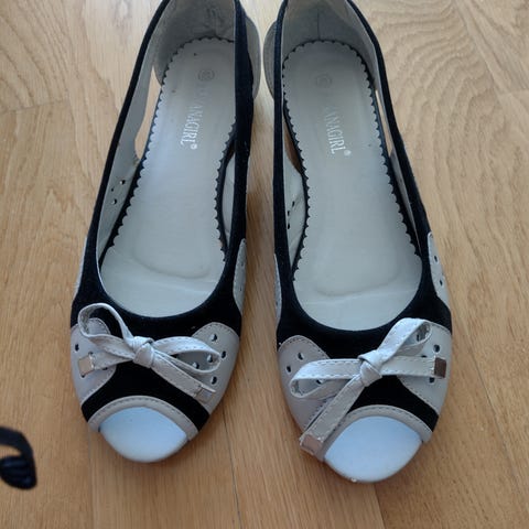 Ej använda då de tyvärr köptes något förstora. (Inuti högra skon syns spår av borttagen prislapp)