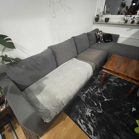 Pga. flytt tänkte jag kolla om de finns något intresse för denna mörkgrå hörnsoffa med divan