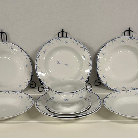 Samt 2 st härliga kökshanddukar av linne i vitt o blått med ett broderat B .