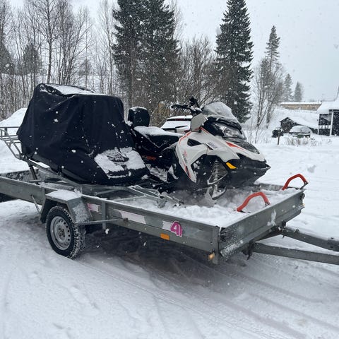 Skulle kunna byta mot mindre vagn utan kåpa. Finns tre mil norr om Östersund.