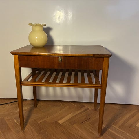 Säljer ett nätt, litet fint sideboard i oljad ekfanér, troligtvis 60-tal. Överlag i fint skick men liten fanérskada , syns på bild 4.