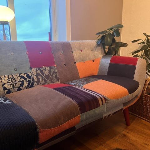 Fläckfri och utan skador (kanske något sliten i tyget)