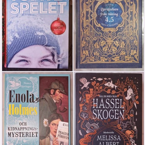 Spännande ungdomsböcker set innehållande 10 delar med titlar som Alfred Hitchcock och tre deckare löser: Papegojans gåta, Gröna vålnadens gåta, Spindelns gåta, Enögda kattens gåta, Lurande lejonets gåta, Sjungande ormens gåta, Kuslige konstnärens gåta, Stirrande trädets gåta med flera. Böckerna är i hårda pärmar och är hela, rena och rökfria.