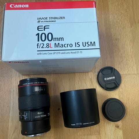Säljer ett Canon EF 100mm f/2.8L IS USM Macro i mycket fint skick.