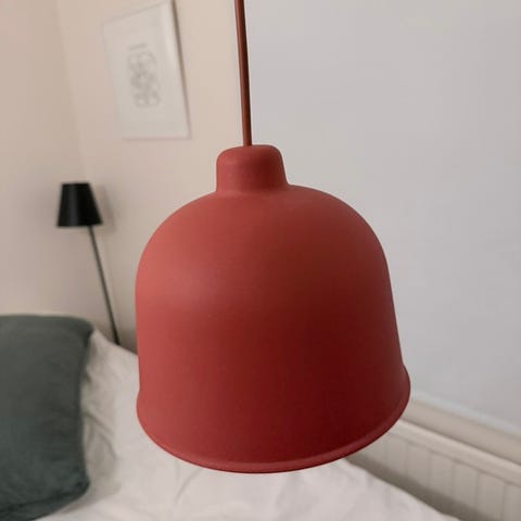 Vi flyttar och måste sälja vår fina matbordslampa. Amber Rail Lamp från Muuto i färgen Taupe.
