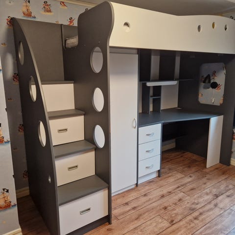 Loftsäng med skrivbord o garderob