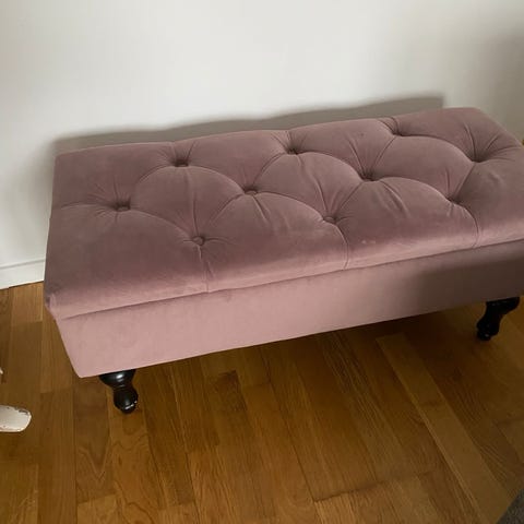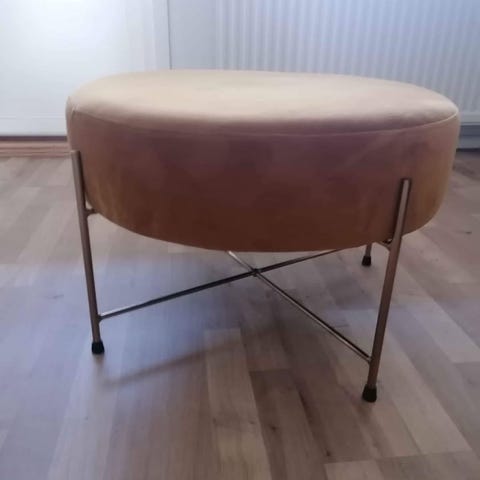 Padborg sittpuff i guld (senapsgul) i sammet från Jysk.