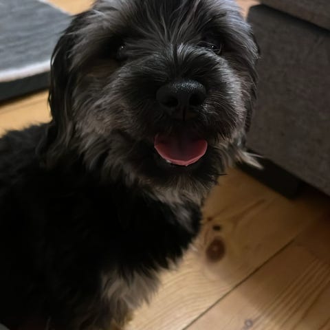 Han tycker det är jättekul med trickträning, leka och kasta boll. Han älskar att gosa och har inget emot lugna dagar ihop på soffan.