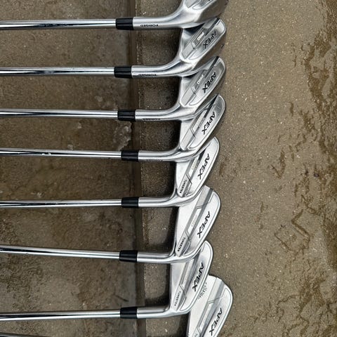 8-P är strongloftade för att matcha Apex 5-7 och skaften är Nippon Modus Tour 105 R med nästintill nya grepp från Lamkin (standard size).