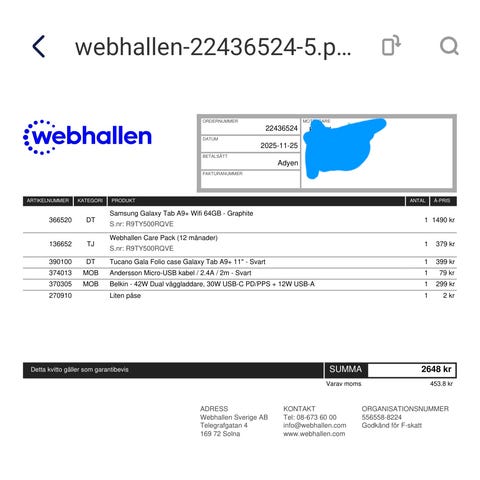 Galaxy Tab A9+ WIFI tablet 4/64 GB