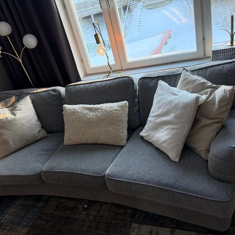Säljer en stilren och mycket bekväm soffgrupp från Mio i grått tyg.