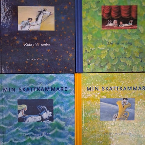 Alla 10 böcker och visboken för 225 kronor. Böckerna är inbundna och är tryckta på slutet av femtiotalet och innehåller en mängd olika sagor. Det finns två upplagor av nummer 3 så det är bara att välja vilken av de två som du vill ha.