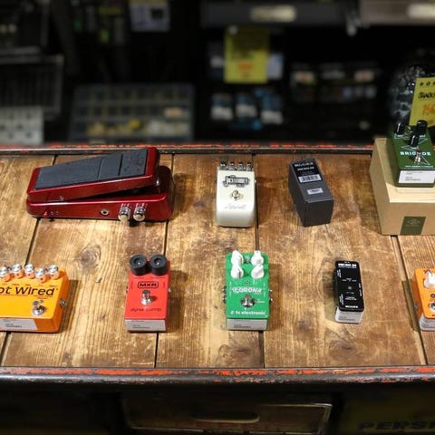 Säljer ett pedalbord i trä inkl 3 pedaler som faktiskt låter helt ok! 2 st overdrives + 1 tremolo.