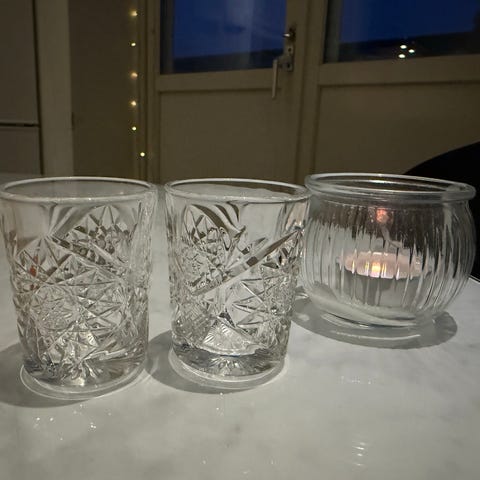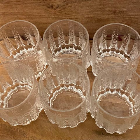 2 st Iittala glas i transparent glas. Glasen har en distinkt design med en stabil fot och vertikala mönster på kroppen. Passar för servering av drycker.