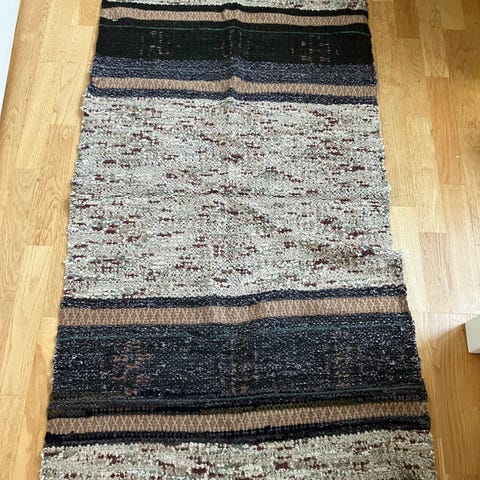 Mått 62x118. Har endast legat inomhus och är i gott skick. Är svart, när bilderna togs låg den i dagsljus nära fönster så därför ser den gråare ut.