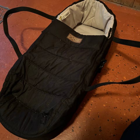 En insats till liggdelen i barnvagn som varit oumbärligt för oss utan hiss! Man har den i liggdelen och när babyn sover lyfter man enkelt i och ur vagnen med baby i.