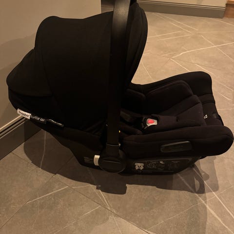 Babyskydd i fint skick. Har inte varit med om någon krock. Isofix-bas och adaptrar till bugaboo fox medföljer. Super när bebisen ska med på stan eller till affären!
