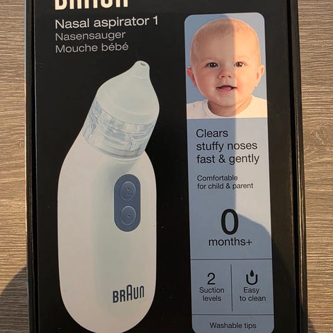 Braun Nasal Aspirator 1 är en nässug för barn som används för att avlägsna nästäppa på ett skonsamt sätt. Produkten är utformad för att vara enkel att använda och rengöra, och levereras med en mjuk sugdel som är anpassad för barns näsor.