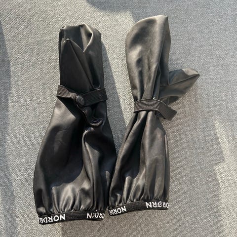 Grå regnhatt med brett brätte och knytband. Perfekt för regniga dagar.